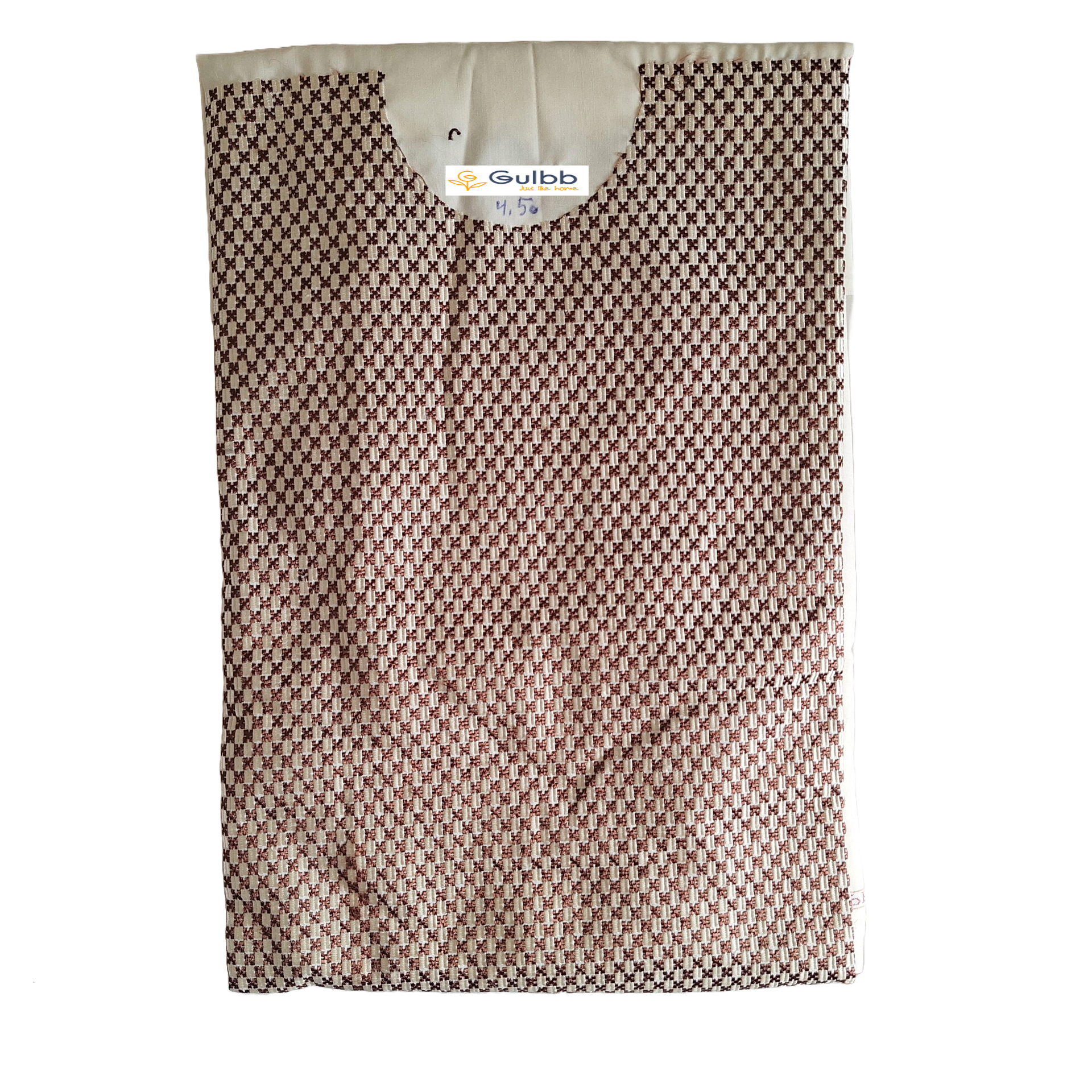 Chemise (peraan) with white, and brown squared embroidery at upper section. It has two buttons on each shoulder for extra comfort and style. Comes with a modern fitted partoog (tonbaan) for a relaxed fit.