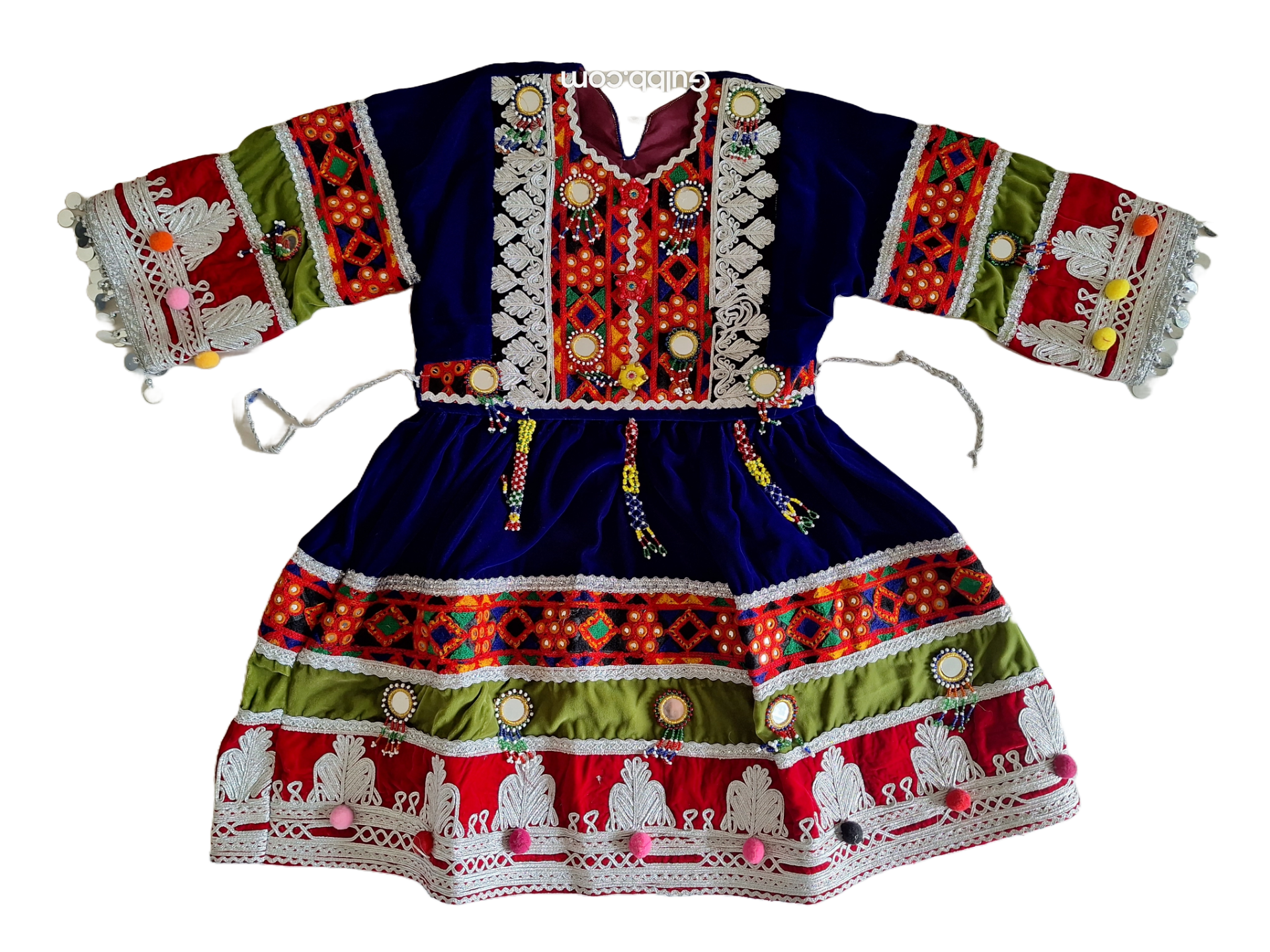 This stunning Afghan kuchi dress showcases deep and vibrant colors. It has some of beads, mirrors, and beautiful emboridery! Hard to describe with words so check out the photos. A beautiful dress that is definitely an eye-catcher!